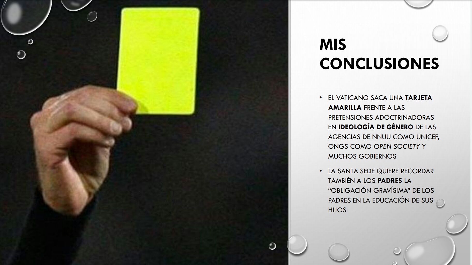 Porque en mi interpretación, el Vaticano saca la tarjeta amarilla contra las pretensiones de adoctrinamiento en IDEOLOGÍA DE GÉNERO